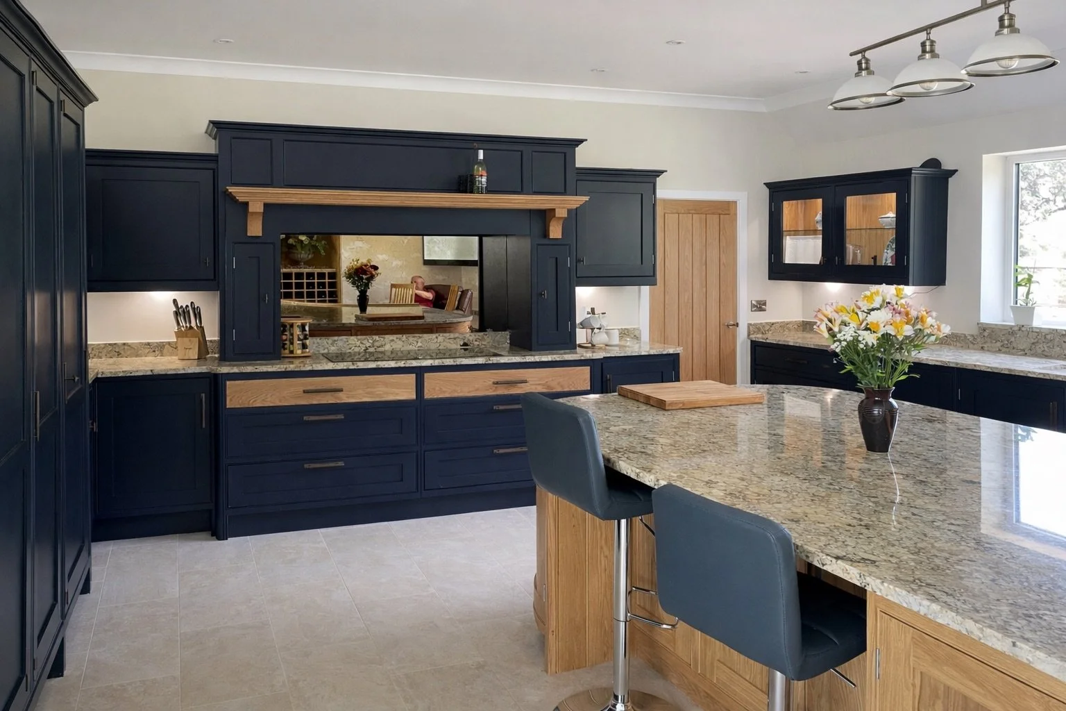 A timeless in-frame kitchen designed for a new-build home near Louth, combining painted cabinetry, solid oak details and Sutton Gold granite worktops. This project is a good example of how Samuel Neal balances classic character with practical layout, creating a kitchen that feels settled, individual and built to last.