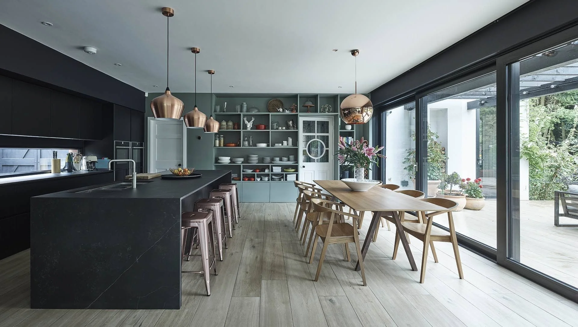 The finished kitchen holds its own within a house full of architectural character. The matte black cabinetry, Dekton worktops and copper details sit comfortably in the new extension without trying to replicate the period features of the original building. It is a confident, well-executed design that has aged well. The same architect practice continues to specify Dekton Kelya on subsequent projects, which is as good an endorsement as any.